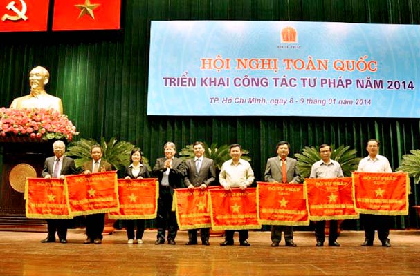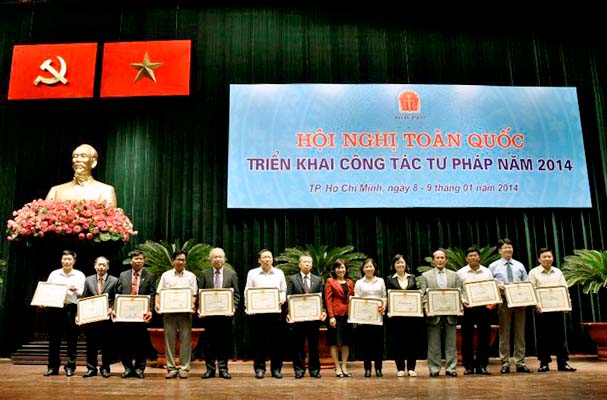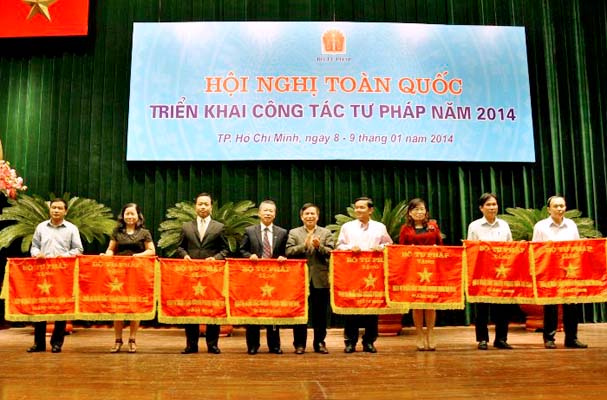 Nhân dịp này, Hội nghị cũng đã công bố và trao các quyết định khen thưởng (Cờ thi đua ngành Tư pháp, danh hiệu chiến sỹ thi đua ngành Tư pháp) cho các đơn vị, cá nhân có thành tích xuất sắc trong phong trào thi đua ngành Tư pháp năm 2013; đồng thời tiến hành phát động phong trào thi đua năm 2014 với chủ đề: “Toàn Ngành Tư pháp đồng thuận, vượt khó, thi đua hoàn thành xuất sắc nhiệm vụ chính trị được giao”.