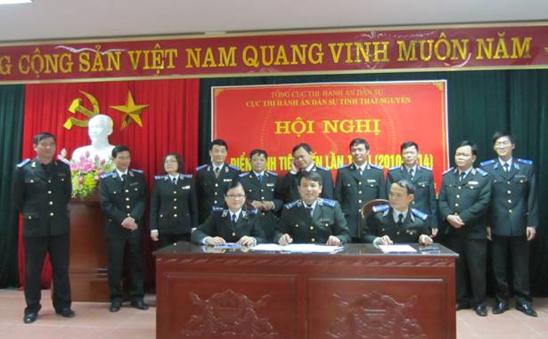Tại Hội nghị đồng chí Dương Văn Quyết, Cục trưởng cục THADS tỉnh đã phát động phong trào thi đua năm 2015, trên cơ sở đó, các phòng, các Chi cục THADS cấp huyện thuộc Cục đã ký kết giao ước thi đua phấn đấu hoàn thành xuất sắc các nhiệm vụ được giao và trao thưởng các tập thể, cá nhân được Bộ trưởng Bộ Tư pháp khen thưởng năm 2014.