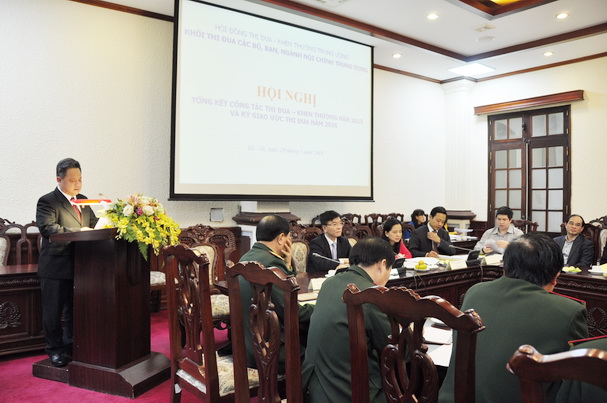 Trình bày dự thảo báo cáo tổng kết phong trào thi đua năm 2015, thay mặt đơn vị Khối trưởng, Thứ trưởng Bộ Tư pháp Trần Tiến Dũng cho biết, hoạt động của khối và công tác thi đua khen thưởng ở từng Bộ, ban ngành trong khối nội chính TW đã có những chuyển biến tích cực. Cùng với việc phát động phong trào thi đua, khen thưởng thường xuyên trong năm, một số Bộ, ngành trong Khối đã có sáng kiến phát động các phong trào thi đua theo đợt, theo chuyên đề gắn với các sự kiện chính trị quan trọng, kỷ niệm các ngày lễ lớn của đất nước, ngày truyền thống của ngành của đơn vị để tạo bước đột phá trong tổ chức thực hiện nhiệm vụ chính trị trong từng giai đoạn. Phong trào thi đua đã lôi cuốn được đông đảo cán bộ, công chức hăng hái hưởng ứng hoàn thành xuất sắc nhiệm vụ được giao. Các Bộ, ban, ngành thành viên trong khối còn tham mưu đề xuất với Đảng, Chính phủ tập trung lãnh đạo, chỉ đạo, khắc phục khó khăn, kiềm chế lạm phát, ổn định kinh tế vĩ mô, đảm bảo an sinh xã hội, giữ vững an ninh trật tự… Qua các phong trào thi đua đã xuất hiện nhiều tấm gương tiêu biểu; Công tác khen thưởng được thực hiện chính xác, đúng quy định và thực chất hơn.