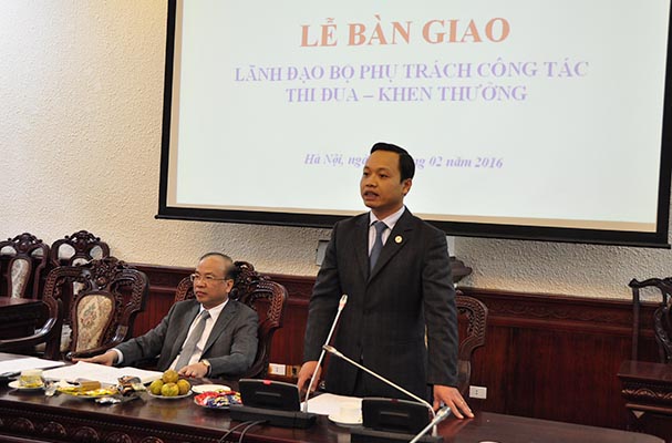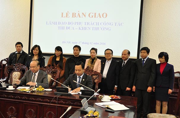 Vừa qua, Thứ trưởng Phan Chí Hiếu và Trần Tiến Dũng đã có buổi bàn giao công tác phụ trách lĩnh vực thi đua, khen thưởng. Công tác thi đua, khen thưởng - động lực thúc đẩy hoàn thành tốt nhiệm vụ.